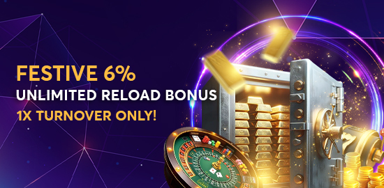 Deposit and enjoy an Unlimited 6% Reload Bonus with 1x Turnover only!